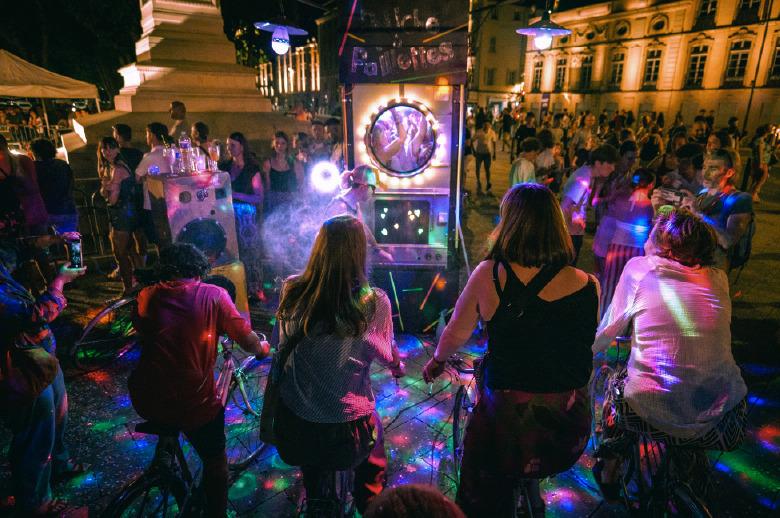 Une installation festive à énergie humaine et à paillettes ! Partagez une expérience cycliste insolite : un dance floor sur roues où les lumières virevoltent de partout !