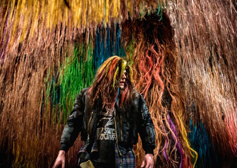 Dans cet espace inhospitalier, trois roadies (techniciens) bourrus brassent des caisses. Peu à peu ils les utiliseront pour construire autour du public un confortable petit chapiteau avec scène et gradins. Dans le temps de ce montage, tout autour - décor, accessoires, comédiens - se transforme et se « poilise ».