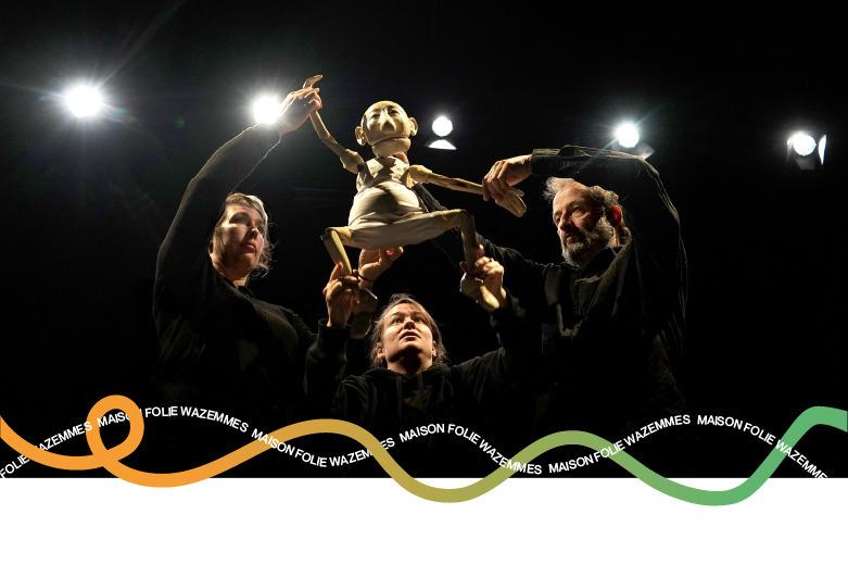 Conception, mise en scène, jeu et manipulation : Cécile Maidon, Noémie Vincart, Michel Villée ; Créateur lumière : Caspar Langhoff ; Créatrice sonore – composition : Alice Hebborn (avec les percussions de Thomas Giry et de vielle à roue de Daniel Schmitz) ; Aide à la mise en scène et à l’écriture : Marion Lory ; Regard dramaturgique et marionnettique : Pierre Tual ; Création de la marionnette et scénographie : Valentin Périlleux ; Constructeur : Corentin Mahieu et Simon Dalemans ; Création magique : Andrea Fidelio ; Costumière : Rita Belova ; Couturière : Sylvie Thévenard ; Régie son et lumière : Margaux Fontaine / Fanny Boizard