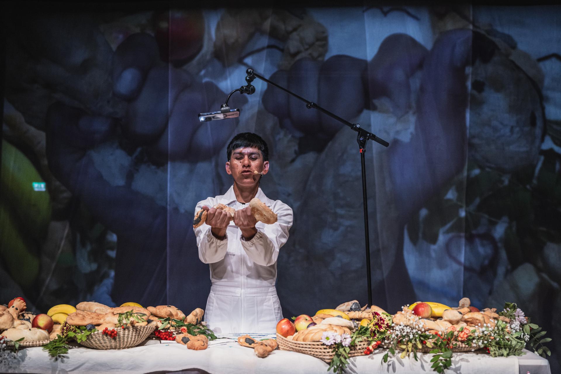 Tiziano Cruz est originaire des montagnes du nord de l’Argentine, une région très pauvre de la province de Jujuy. Après avoir quitté son village pour aller à l’université, il a pris refuge dans les institutions artistiques, « pour ne pas mourir » dit-il. Wayqeycuna (« mes frères », en langue Quechua) est la dernière pièce de la trilogie Tres Maneras de Cantarle a una Montaña, dans laquelle l’artiste reprend le chemin de son enfance pour livrer une analyse en tension de sa propre situation politique. Que faire de sa place sur le marché de l’art, dans un monde où l’exploitation capitaliste et le colonialisme culturel dévastent les paysages et les communautés marginalisées ? Comment faire de l’art pour les pauvres, les exclu·es, les mort·es, depuis l’endroit où il est maintenant ? À travers une série de gestes poétiques, d’images d’archives tournées dans ses montagnes natales et de rituels partagés dans lesquels affleure le deuil de sa sœur, Tiziano Cruz tente de contrer la violence du monde en faisant émerger un puissant sentiment de communauté. Il dresse, pour le public et pour ses mort·es, un banquet étonnant, une invitation à repenser ensemble ce qui nous lie.